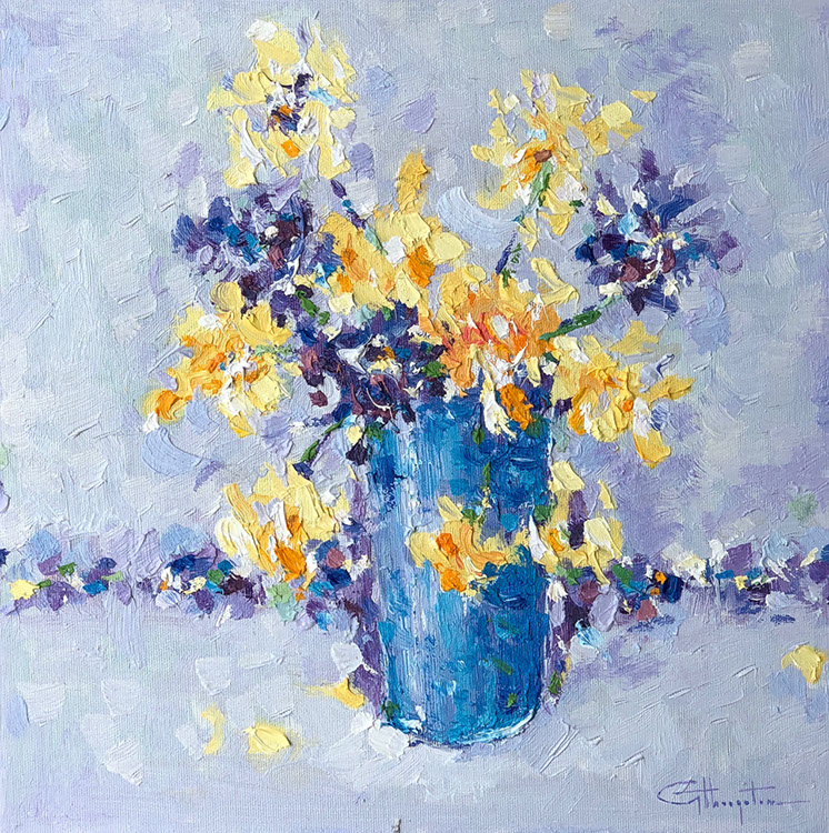 Chrysanthemen in blauer Vase